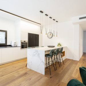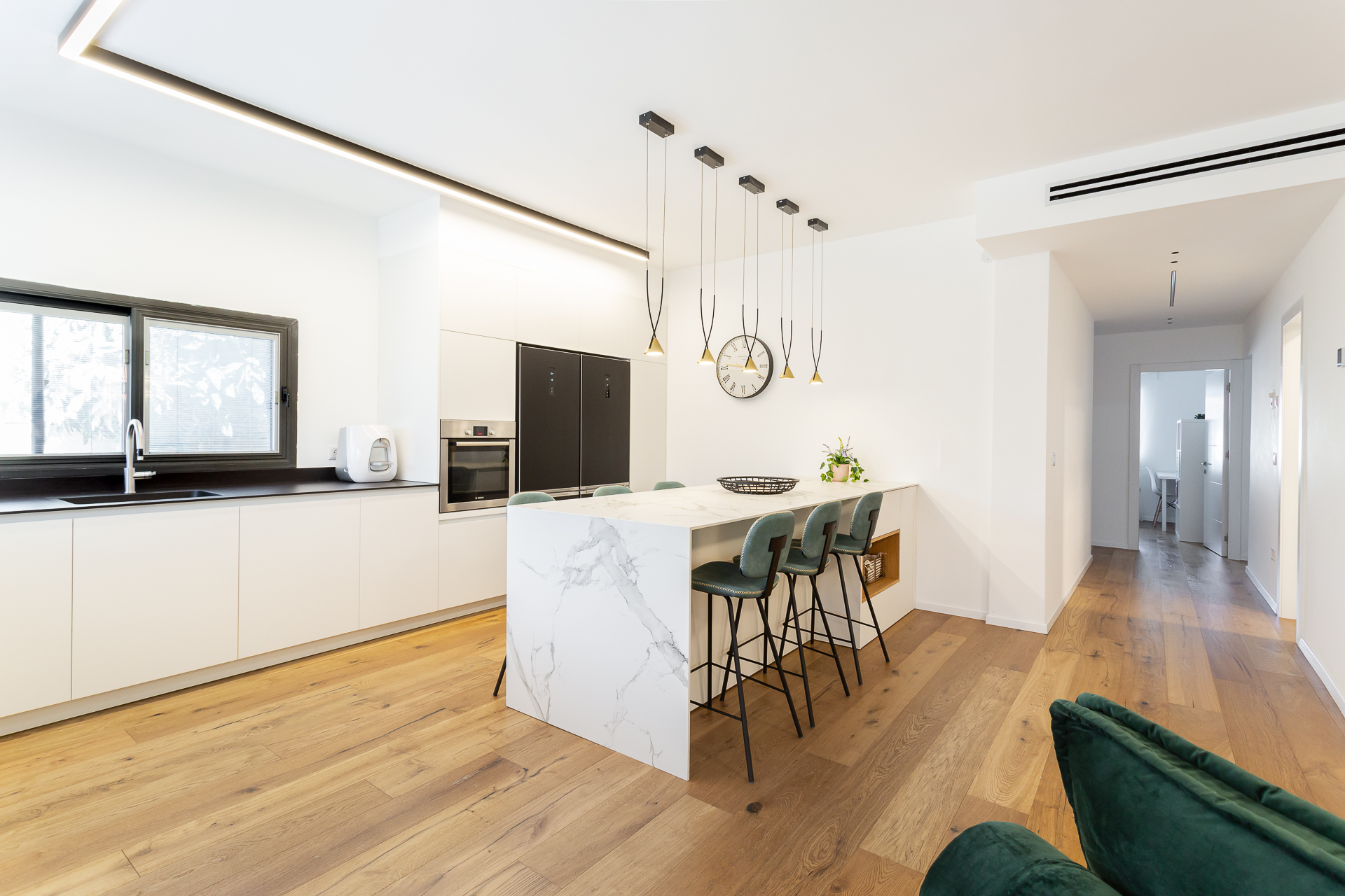 המטבח עוצב בשחור ולבן. צבעים על זמניים שישאירו את המטבח תמיד עדכני.
